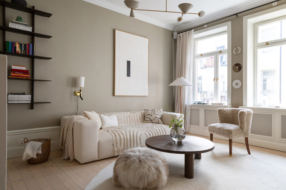 Бежевые интерьеры уже давно перестали быть скучными и неинтересными — в наше время даже изысканное дорогое жильё нередко проектируют в подобной цветовой гамме. Сегодня у нас элегантная современная квартира в классическом доме в Стокгольме, в которой все стены, корпусная мебель и текстиль — бежевые. В данном случае интерьер получился спокойным и приятным, а тёплая основа стала прекрасным фоном для утончённых современных предметов декора. Enjoy!
