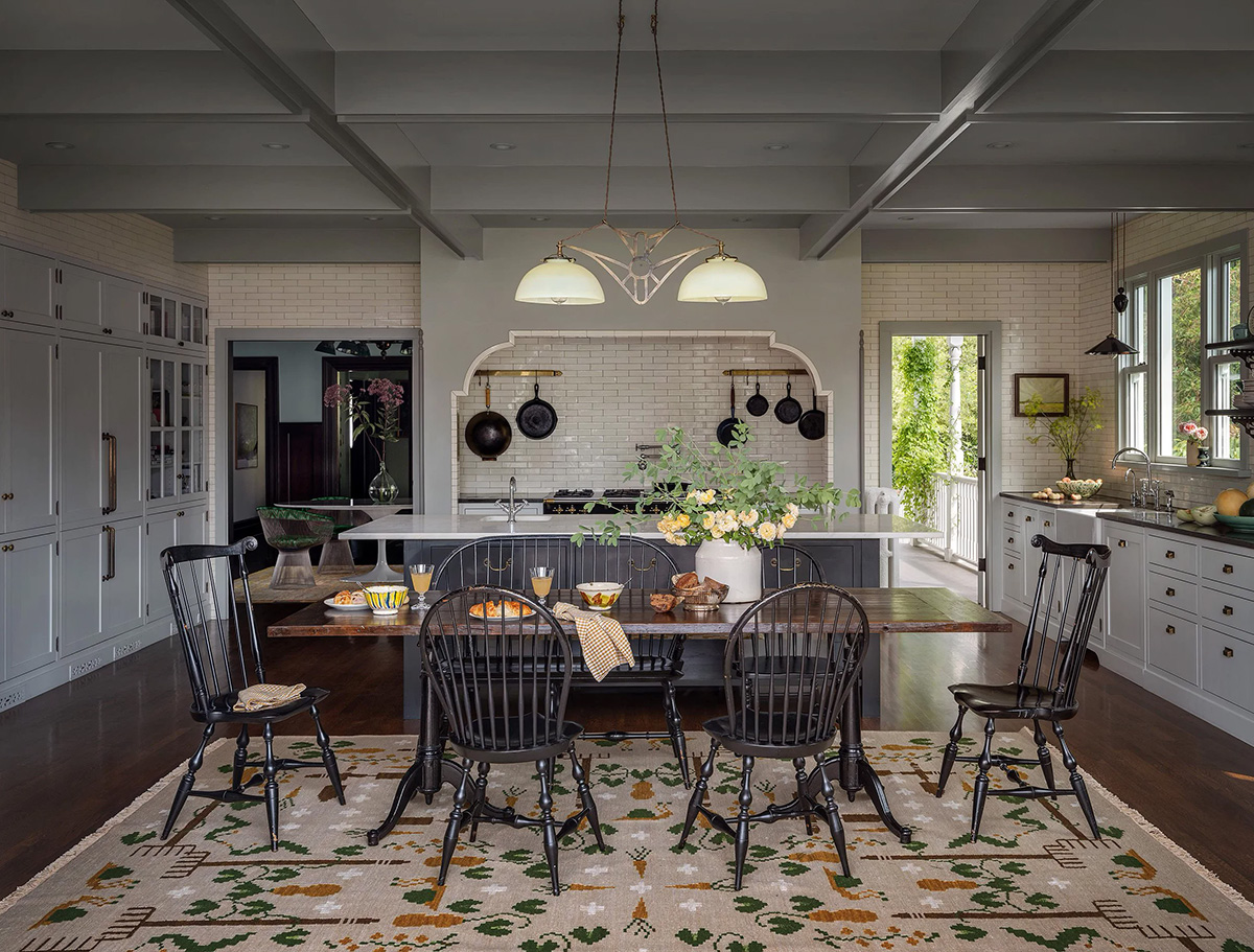 Дизайнер Jessica Helgerson вспоминает, что над этим проектом она работала больше 10 лет, шаг за шагом вместе с хозяевами преображала старый дом в любимое загородное гнёздышко. И гладя на его чудесные интерьеры, нельзя не заметить с каким трепетом и вниманием к мельчайшей детали выполнен дизайн. Красивые нежные оттенки зелёного стали главной темой оформления, найдя своё выражение в цветочные обоях, тонких оттенках и живых растениях. Замечательное жильё!