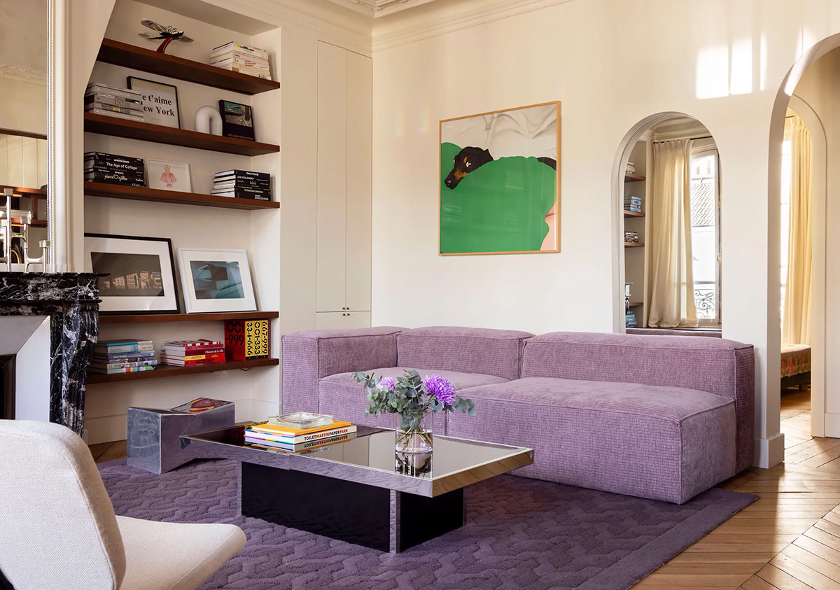 Очаровательная небольшая квартира в Париже с лиловым диваном