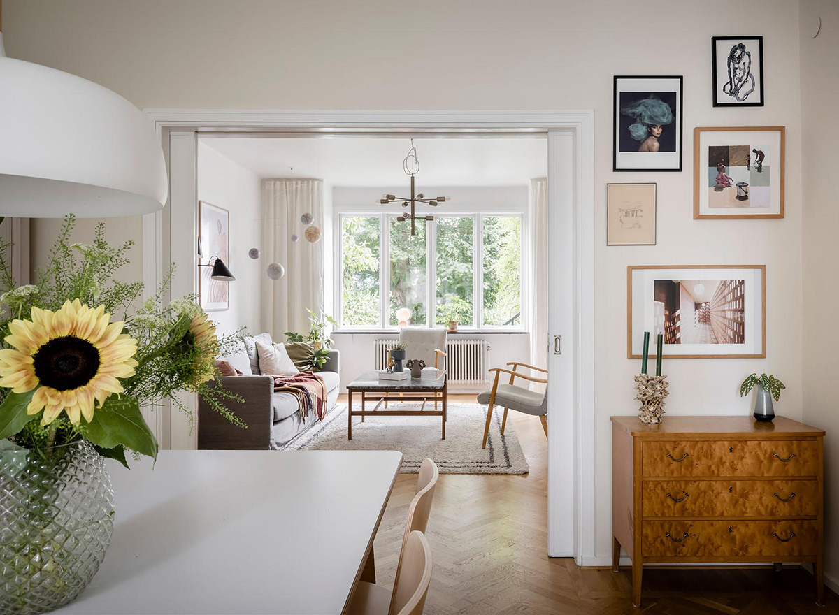 Эта квартира расположилась в скромном, но очень уютном старом домике на окраине Гетеборга, в районе с большим количество зелени и атмосферой загородной жизни. Интерьеры жилья полностью соответствуют обстановке — цветовая гамма светла с обилием естественного света, декор спокойный и выдержанный, но по-скандинавски стильный, на стенах в спальнях — красивые пастельные оттенки. Интересно, что деревья за окном стали неотъемлемой частью настроение в доме, а балкон и вовсе утопает в зелени. Приятного просмотра!