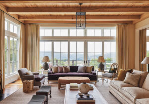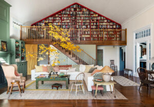 В целом обновлённый интерьер этого старого 100-летнего коттеджа в штате Нью-Йорка получился очень спокойным и расслабляющим — в духе кантри интерьеров американских загородных домов. Но есть здесь один wow-фактор — роскошная библиотека на антресоли в гостиной, которая делает интерьер очень эффектным и подчеркивает высоту пространства. Отличное гнёздышко для любителей подолгу посидеть в кресле с любимой …
