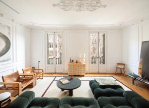 Изящная лепнина и яркий современный дизайн: квартира в Барселоне