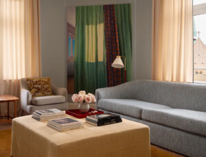 В этой скандинавской квартире много цвета, хотя пёстрым интерьер точно тоже не назовёшь. Дизайнеры отдали предпочтение лёгкий и нежным, еле заметным пастельным оттенкам, благодаря чему создали обволакивающий, а не вызывающий эффект. Самой наглядной в этом плане получилась гостиная с её бледно-голубыми стенами, розовыми диваном и желтым книжным шкафом. Вот такой многослойный, но спокойный и приятный …